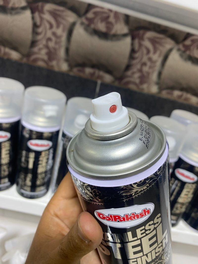 کافیه سطح مورد نظر رو تمیز کنی و اسپری رو با فاصلهی مناسب بپاشی. بعد از خشک شدن، رنگ بهصورت یکنواخت مینشینه و ظاهری شبیه فلز استیل واقعی ایجاد میکنه.