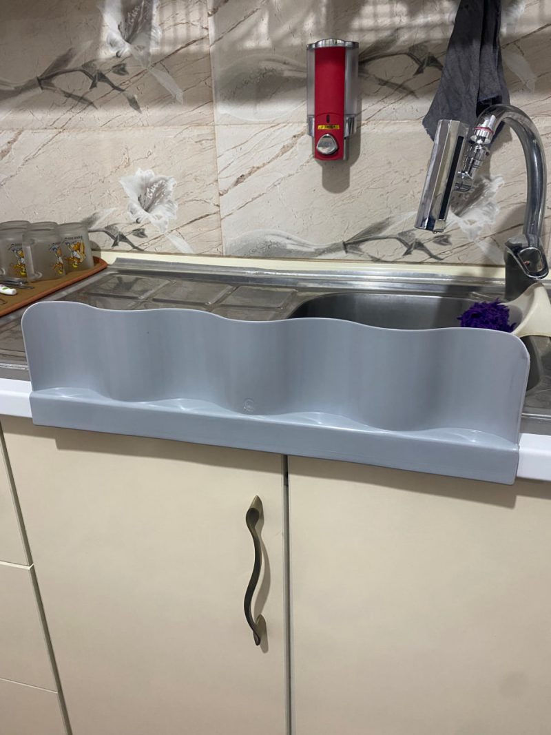 طراحی این گارد بهصورت سایزبندی و فیت انجام شده تا با فشار روی لبهی سینک جا بخوره و کاملاً محکم سر جاش بمونه. همین اتصال دقیق باعث میشه آب از کنارهها رد نشه و به زیر سینک یا کابینت نفوذ نکنه، در نتیجه از پوسیدگی و آسیب جلوگیری میشه